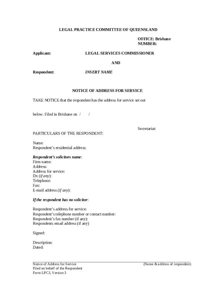 Template Notice of address for service - LPC - 3 - version 3 instructions