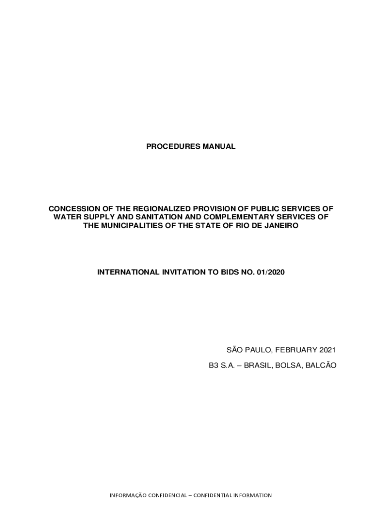 PROCEDURES MANUALCONCESSION OF THE REGIONALIZED PROVISION OF PUBLIC SERVICES OF WATER SUPPLY AND SANITATION AND COMPLEMENTARY SERVICES OF THE MUNICIPALITIES OF THE STATE OF RIO DE JANEIROINTERNATIONAL
