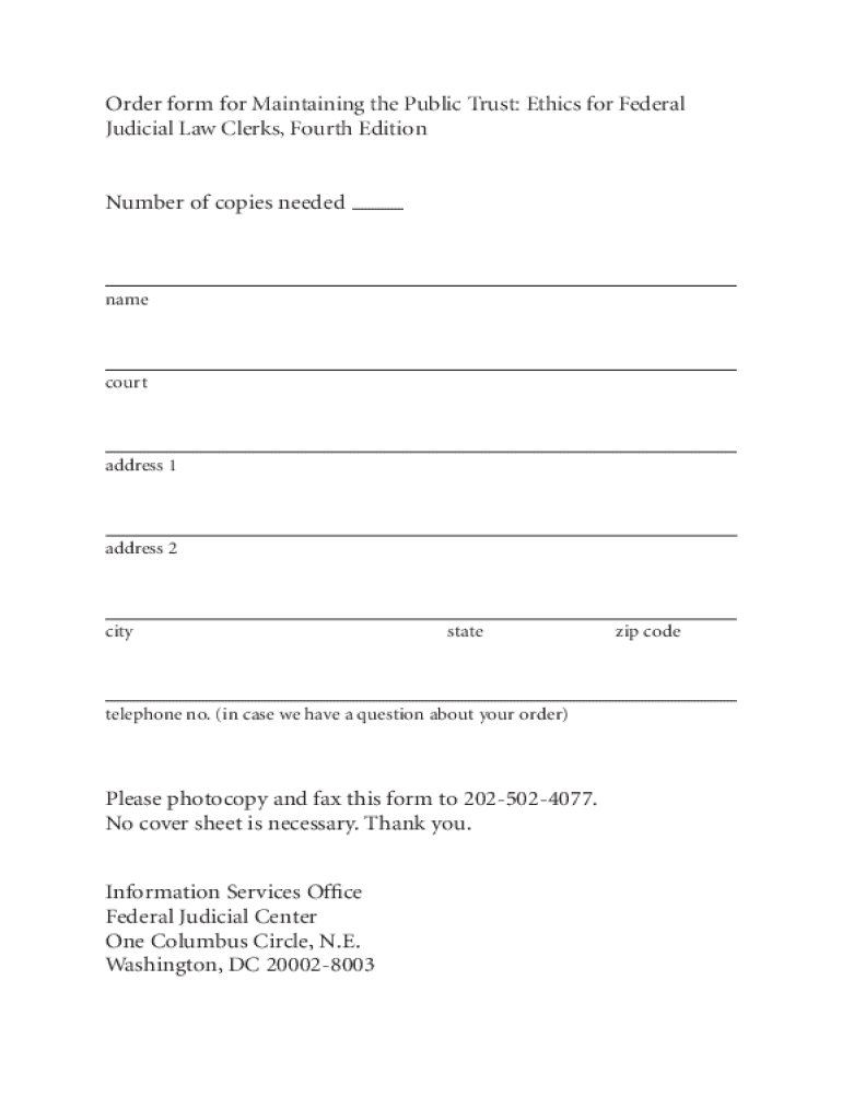 Maintaining the Public Trust Ethics for Federal Judicial Law Clerks Fourth Edition Federal Judicial Center 2013An order form for additional copies of this pamphlet appears on the last page. First