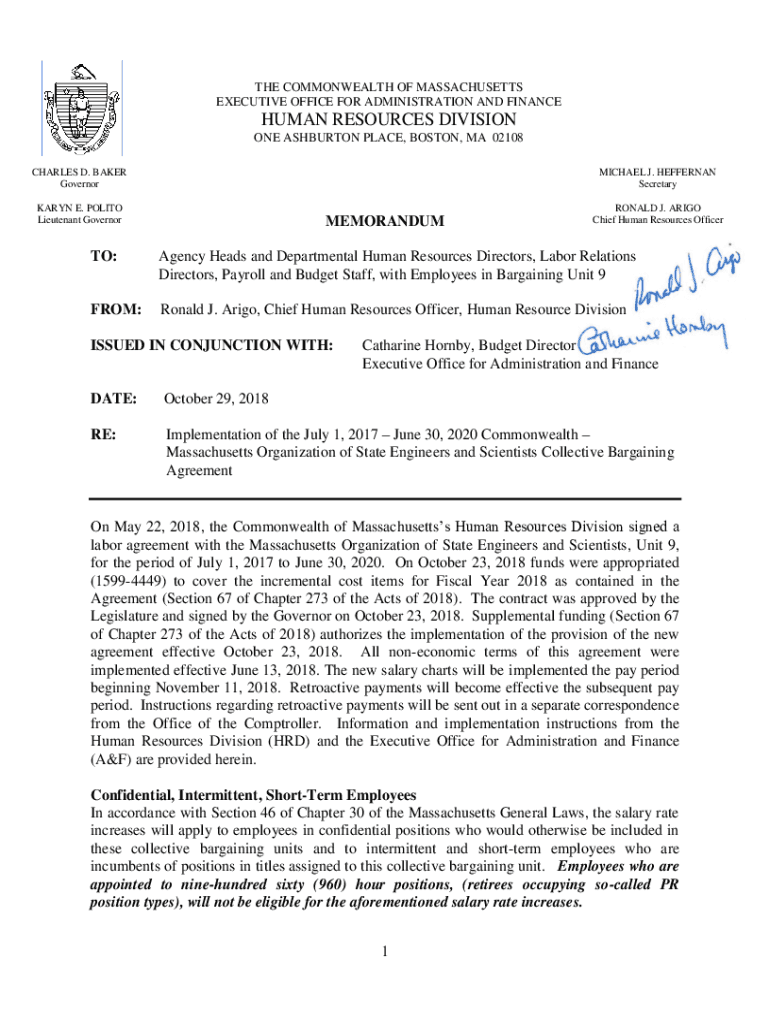 THE COMMONWEALTH OF MASSACHUSETTS EXECUTIVE OFFICE FOR ADMINISTRATION AND FINANCEHUMAN RESOURCES DIVISION ONE ASHBURN PLACE, BOSTON, MA 02108 CHARLES D. BAKER GovernorMICHAEL J. JEFFERSON SecretaryKARYN
