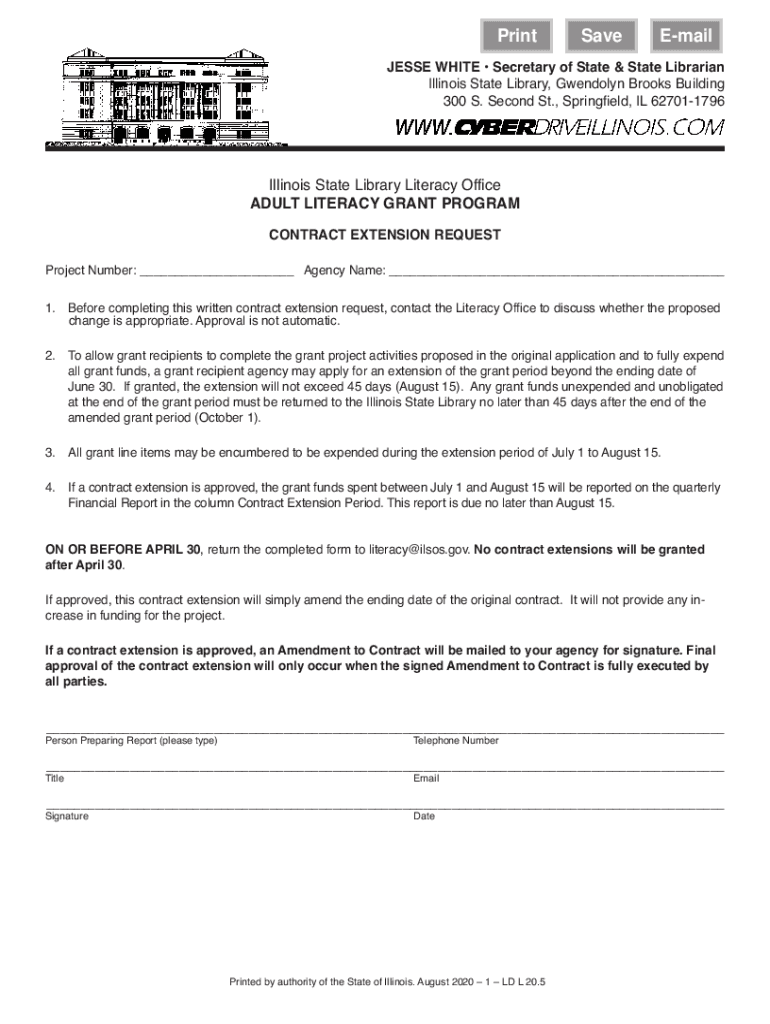 PrintSaveEmailJESSE WHITE Secretary of State & State Librarian Illinois State Library, Gwendolyn Brooks Building 300 S. Second St., Springfield, IL 627011796Illinois State Library Literacy Office