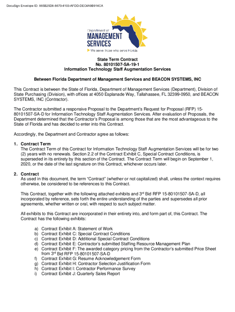 DocuSign Envelope ID: 865B25D686704103AFDDDEC4A9B914CAState Term Contract No. 80101507SA191 Information Technology Staff Augmentation Services Between Florida Department of Management Services and