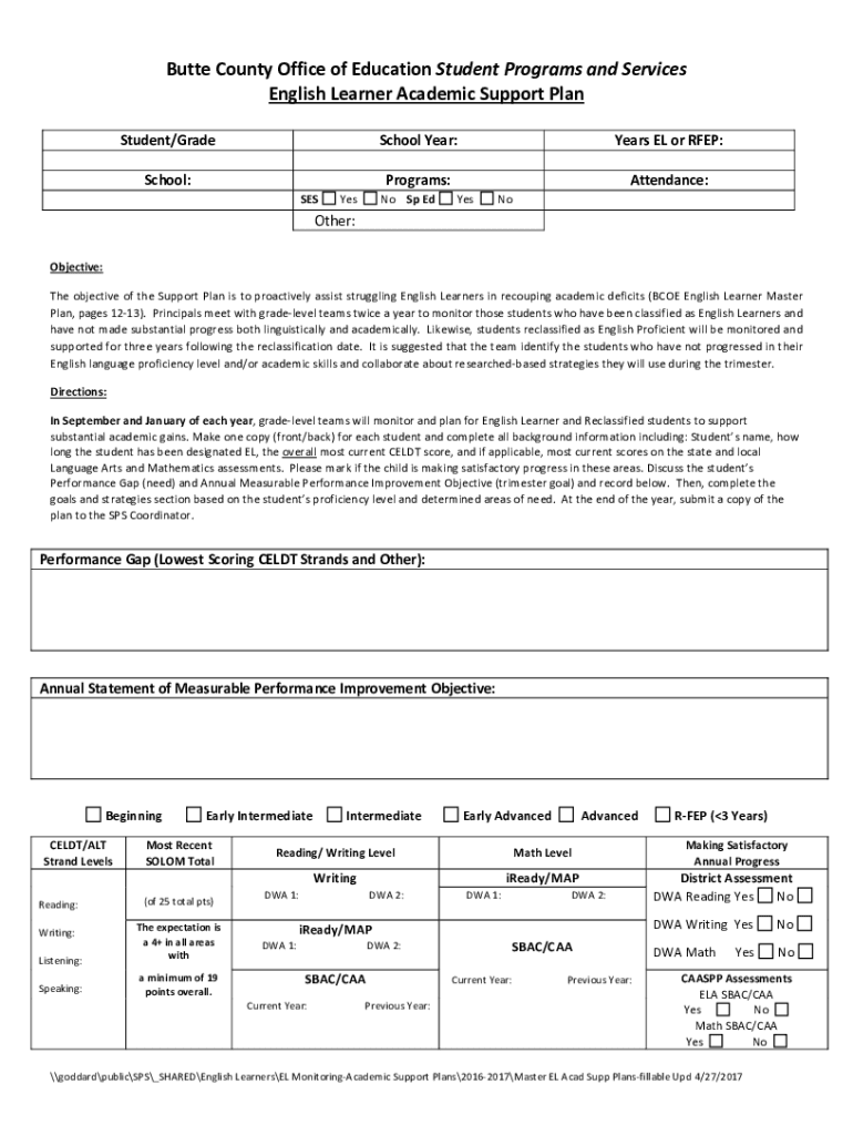ALountyOffice of EducationMASTER PLAN FOR ENGLISH LEARNERS 20172018Butte County Office of EducationMission Butte County Office of Education is committed to the success of every student and the excellence