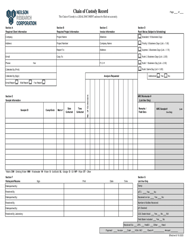 Get the free nrclabs.comChain-of-Custody-Eff-10Chain of Custody - Neilson Research Corporation