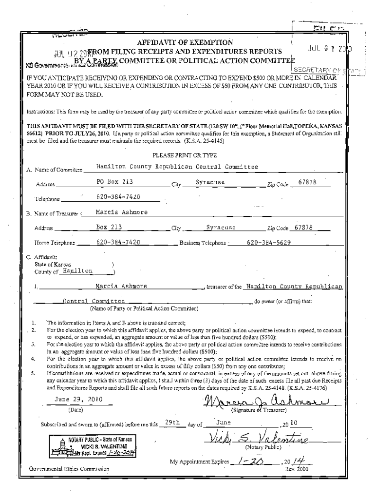 Get, Create, Make and Sign ethicsksgovaffidavitscchmraff1007u zot-lrom filing receipts