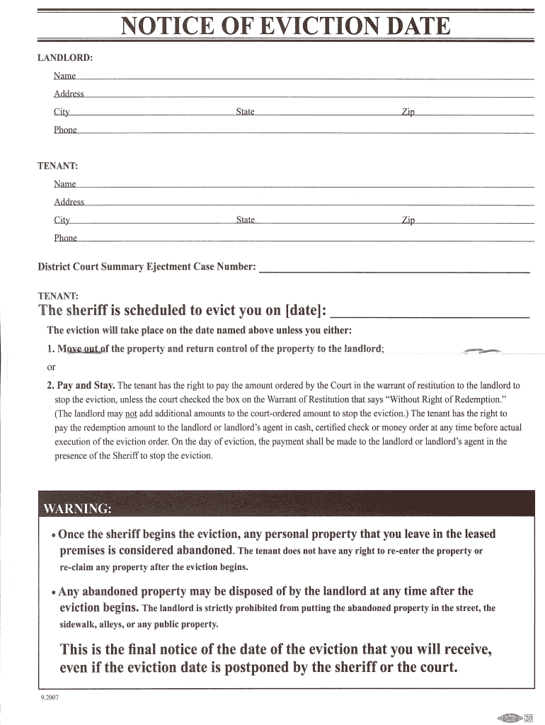 Get the free AGREEMENT TO PROVIDE OWNERS ANDOR PROPERTY MANAGERS NOTICE OF EVICTION DATE to TENANT