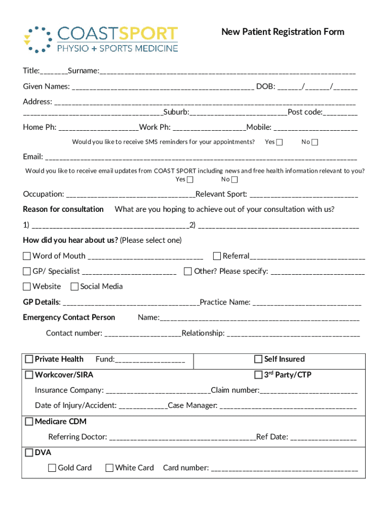 Get the free New Patient Registration Form - Coast Sport