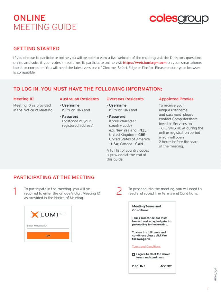 ONLINE MEETING GUIDE GETTING STARTED If you choose to participate online you will be able to view a live webcast of the meeting, ask the Directors questions online and submit your votes in real time.