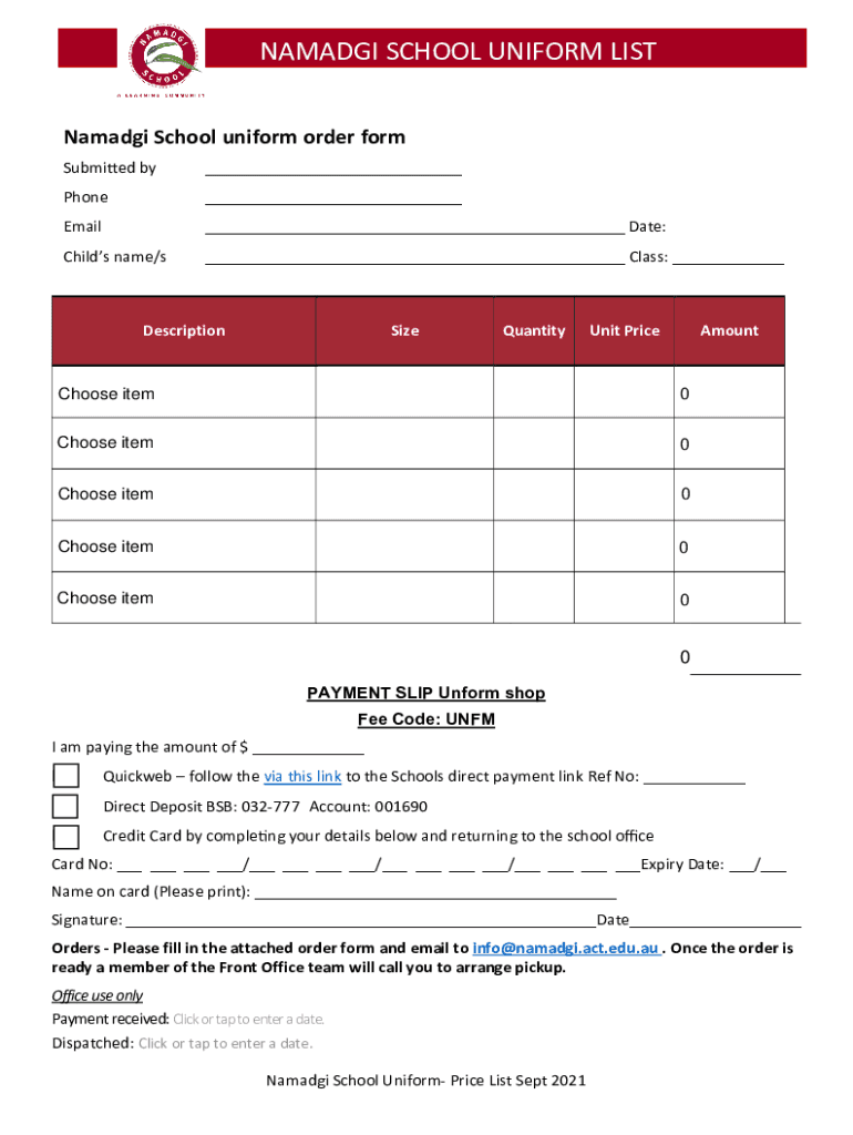 Fill out your namadgi school uniform list online with pdfFiller!
