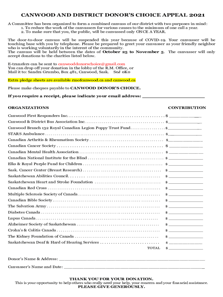 MANHOOD AND DISTRICT DONORS CHOICE APPEAL 2021 A Committee has been organized to form a combined canvass of our district with two purposes in mind: 1. To reduce the work of the canvassers for various