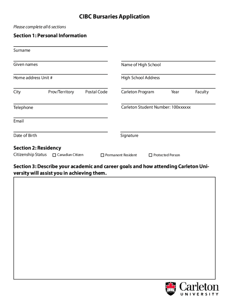 Get the free CIBC Bursaries Application. Application form for CIBC Bursaries at Carleton University.