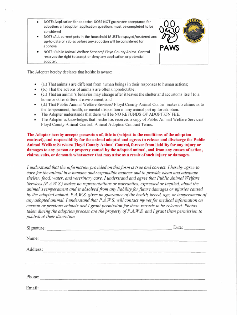Get the free NOTE: Application for adoption DOES NOT guarantee ...