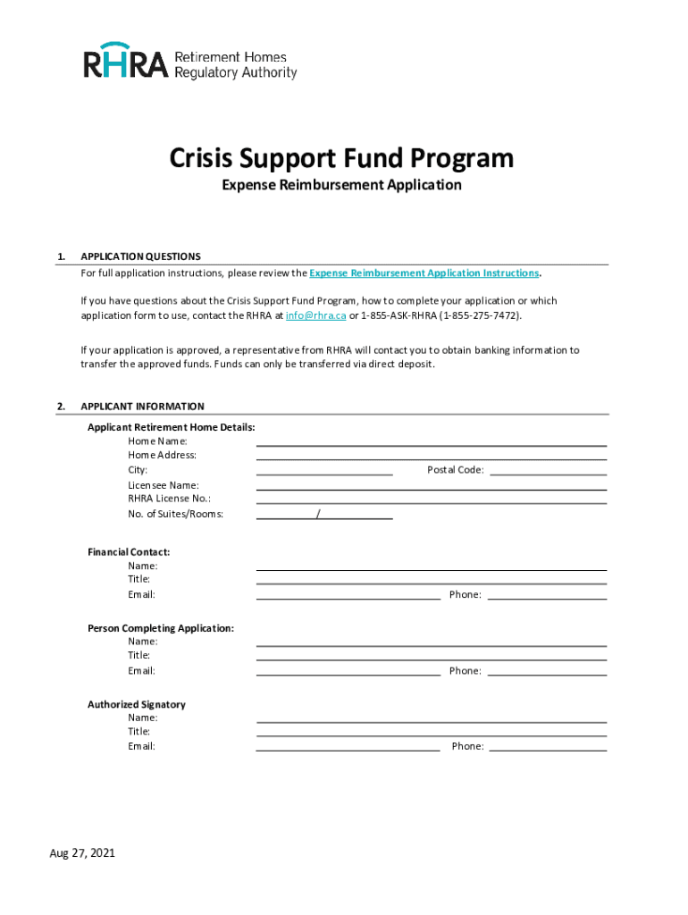 Crisis Support Fund Program Expense Reimbursement Application1.APPLICATION QUESTIONS For full application instructions, please review the Expense Reimbursement Application Instructions. If you have