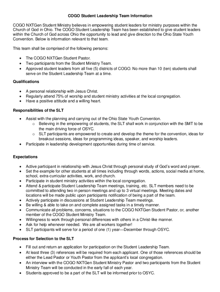 LOGO Student Leadership Team Information LOGO Oxygen Student Ministry believes in empowering student leaders for ministry purposes within the Church of God in Ohio. The LOGO Student Leadership Team