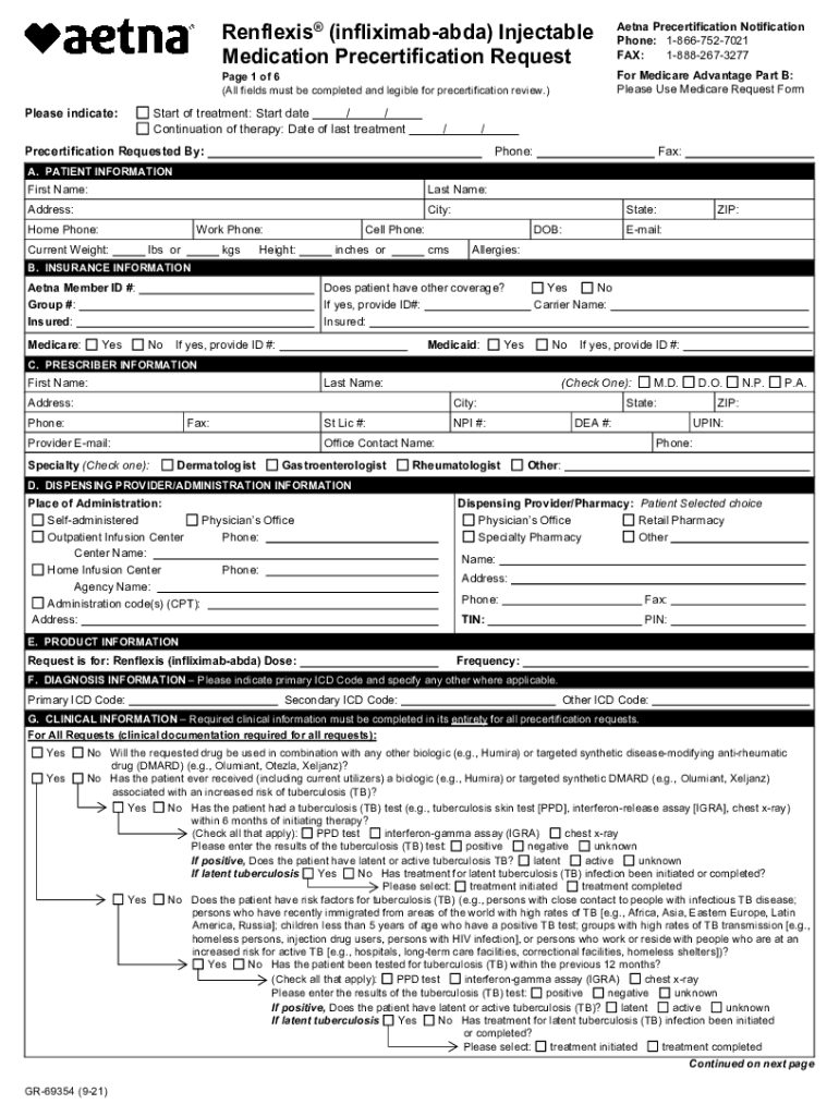 Please indicate:Reflexes (infliximababda) Injectable Medication Recertification RequestAetna Recertification Notification Phone: 18667527021 FAX: 18882673277Page 1 of 6 (All fields must be completed