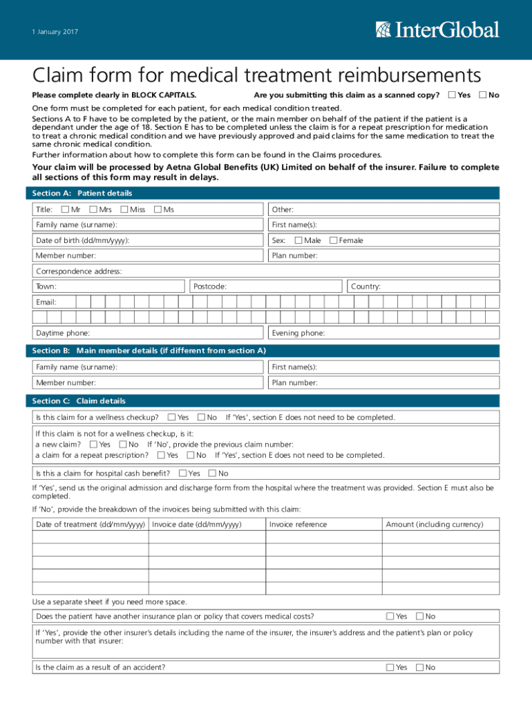 1 January 2017Claim form for medical treatment reimbursements Please complete clearly in BLOCK CAPITALS. Are you submitting this claim as a scanned copy? Festooned form must be completed for each