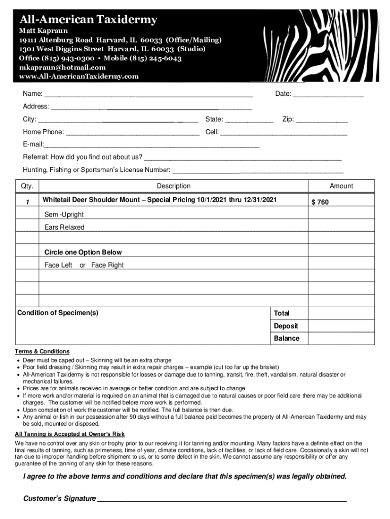 Email, fax, or share your all american taxidermybetter business form via URL. You can also download, print, or export forms to your preferred cloud storage service.