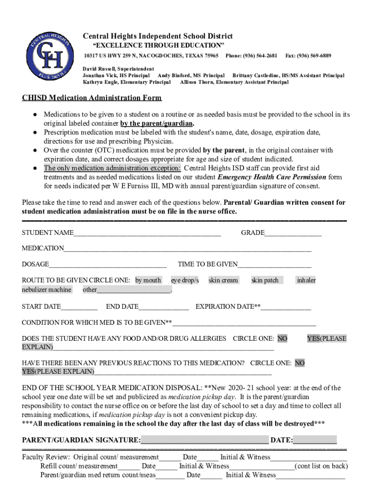 Central Heights Independent School District EXCELLENCE THROUGH EDUCATION 10317 US HWY 259 N, NACOGDOCHES, TEXAS 75965Phone: (936) 5642681Fax: (936) 5696889David Russell, Superintendent Jonathan Pick,