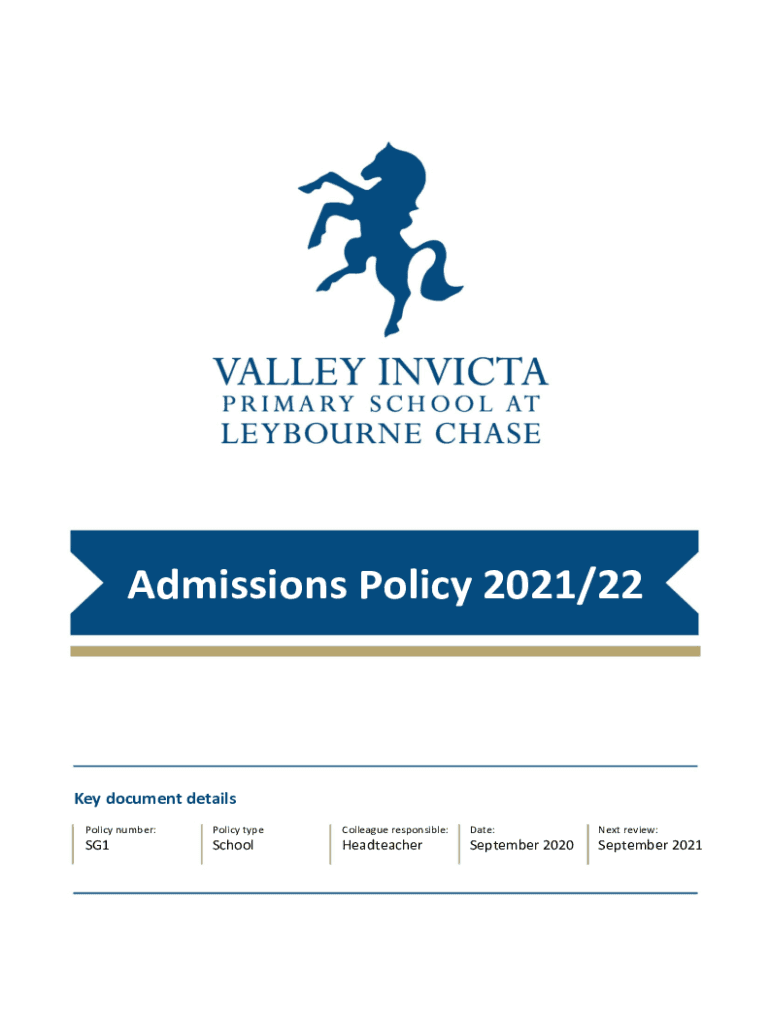 Admissions Policy 2021/22Key document details Policy number:Policy typeColleague responsible:Date:Next review:SG1SchoolHeadteacherSeptember 2020September 2021Admissions Policy Admission Numbers and