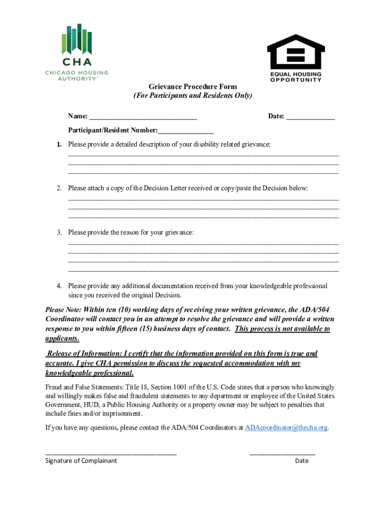 Grievance Procedure Form (For Participants and Residents Only) Name: Date: Participant/Resident Number: 1. Please provide a detailed description of your disability related grievance: 2. Please attach