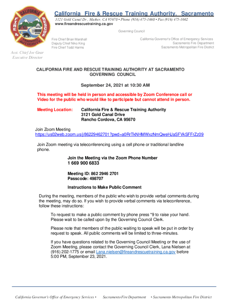 Get the free California Fire & Rescue Training Authority. Sacramento
