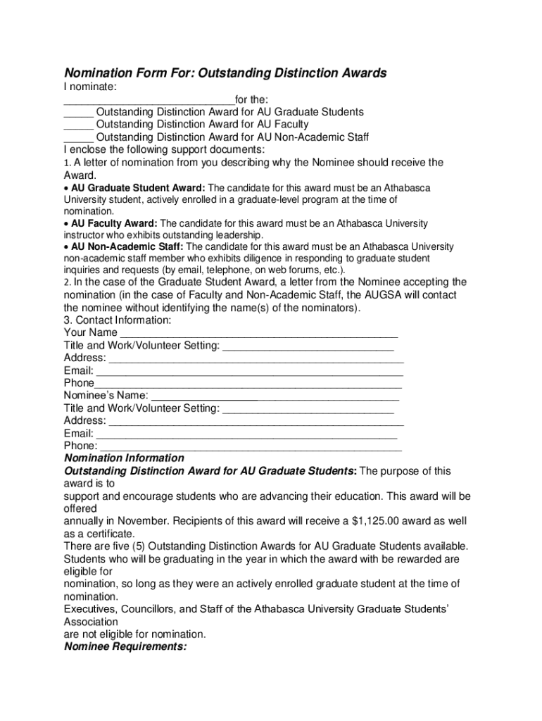 Whether you are a student, professional, artist, scientist, or someone who has excelled in their respective domain, the nomination form for outstanding distinction may be necessary to apply for various recognition programs and opportunities.