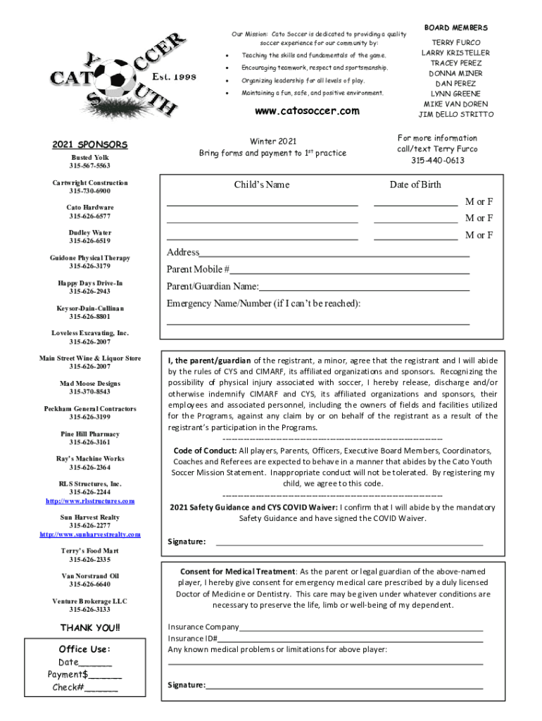 Our Mission: Cato Soccer is dedicated to providing a quality soccer experience for our community by: Teaching the skills and fundamentals of the game. Encouraging teamwork, respect and sportsmanship.
