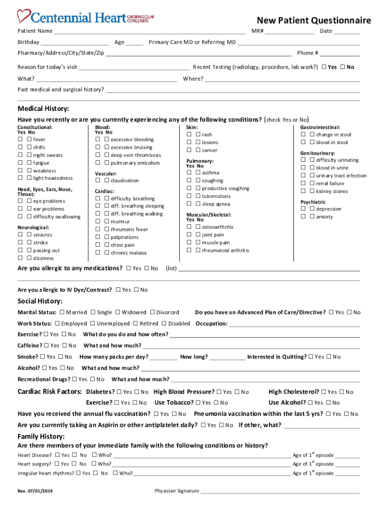 New Patient Questionnaire Patient Name MR#BirthdayAgeDatePrimary Card or Referring Pharmacy/Address/City/State/iPhone# Recent Testing (radiology, procedure, lab work?) YesReasonfor today's visit Nowhere?