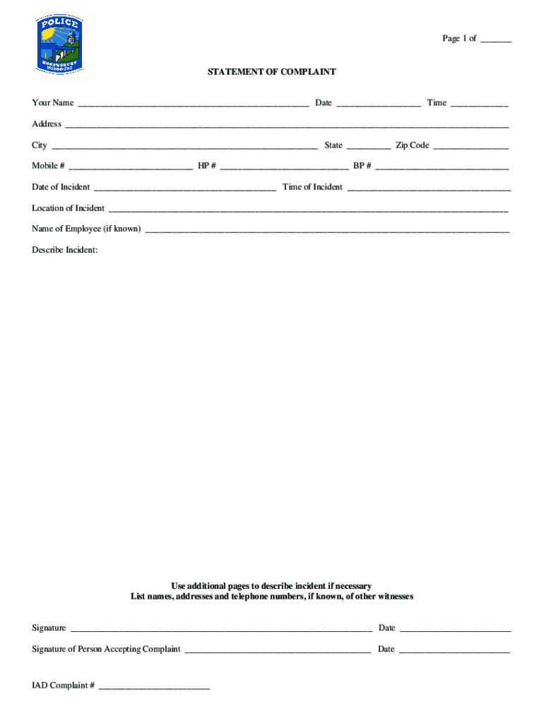 Fill out your citizen complaint form website online with pdfFiller!