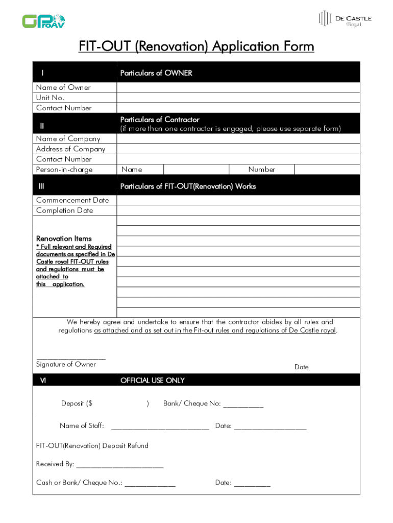 The owner or tenant of a building or premises who wishes to carry out fit-out works is required to file fit-out application form2021518.