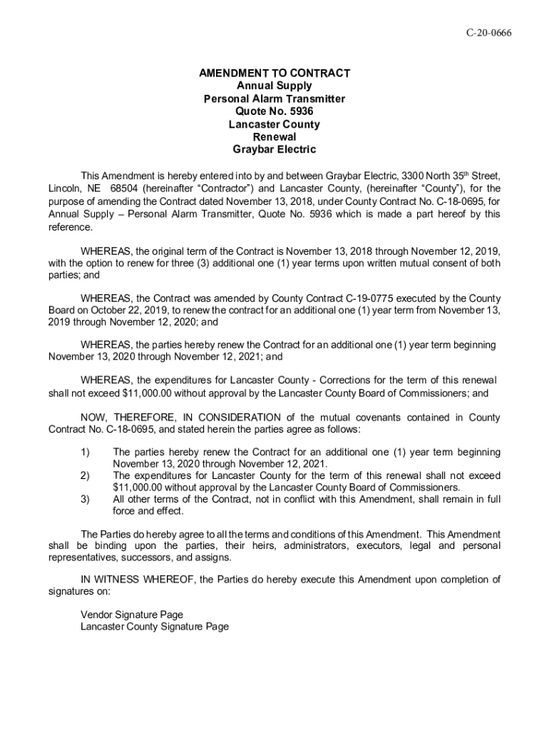 Get the free AMENDMENT TO CONTRACT Annual Supply ... - lancaster.ne.gov