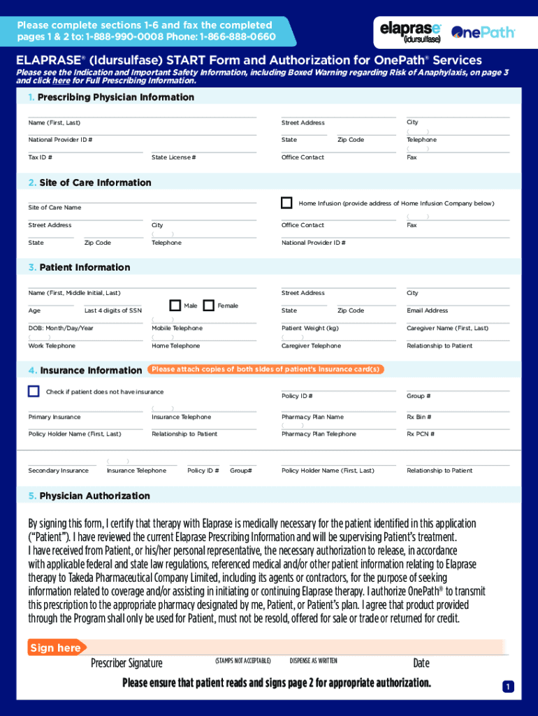 Please complete sections 16 and fax the completed pages 1 & 2 to: 18889900008 Phone: 18668880660ELAPRASE () START Form and Authorization for Neath ServicesPlease see the Indication and Important Safety