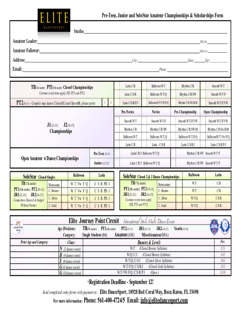 Get the free 03. Pre-Teen. Junior and SoloStar Amateur Championships and Scholarships Entry Form ...