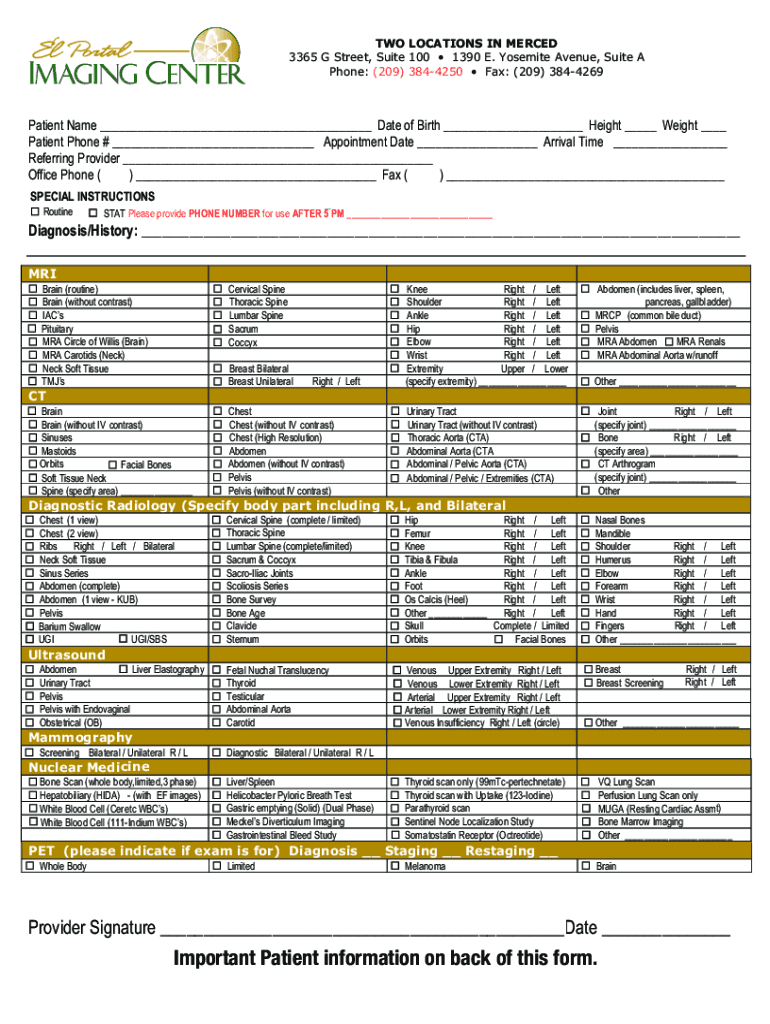 Get the free Patient i Important Patient information on back of this form.