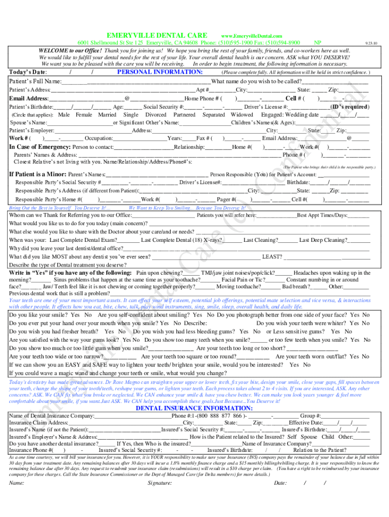 To fill out forms related to Rose Magno DDS Emeryville, patients may need to provide personal information, insurance details, and details of dental services received.