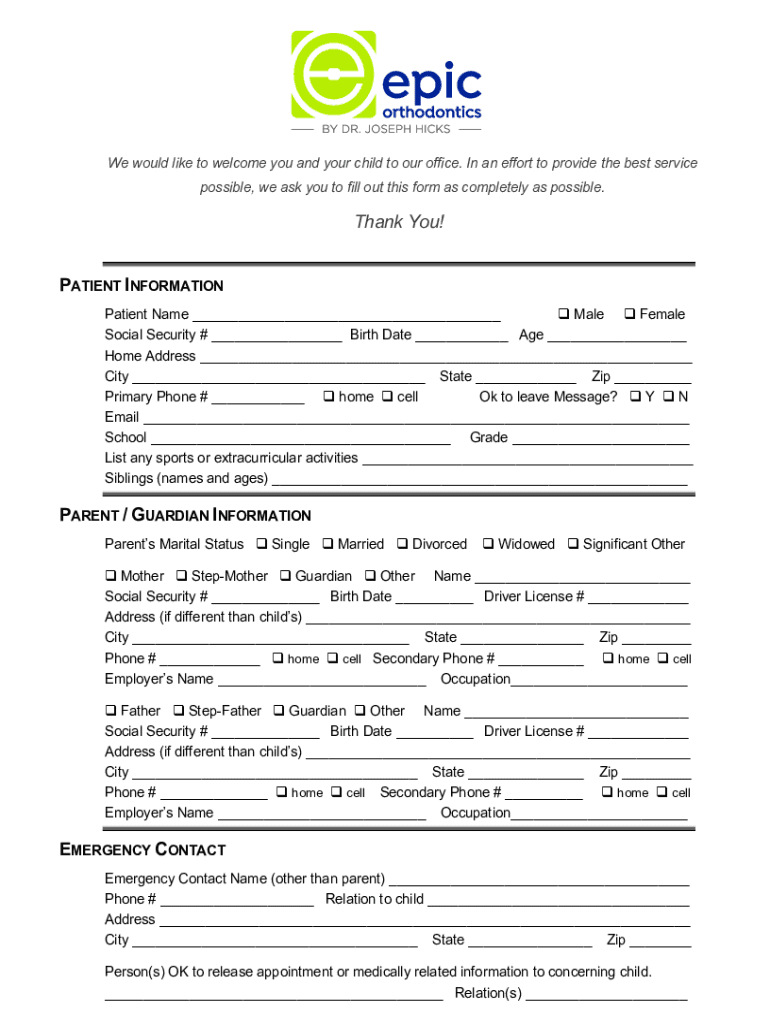 We would like to welcome you and your child to our office. In an effort to provide the best service possible, we ask you to fill out this form as completely as possible. Thank You!PATIENT INFORMATION