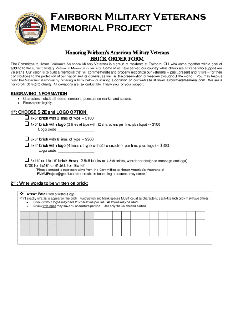 Get the free Brick Paver Program - Fairborn Military Veterans Memorial ...