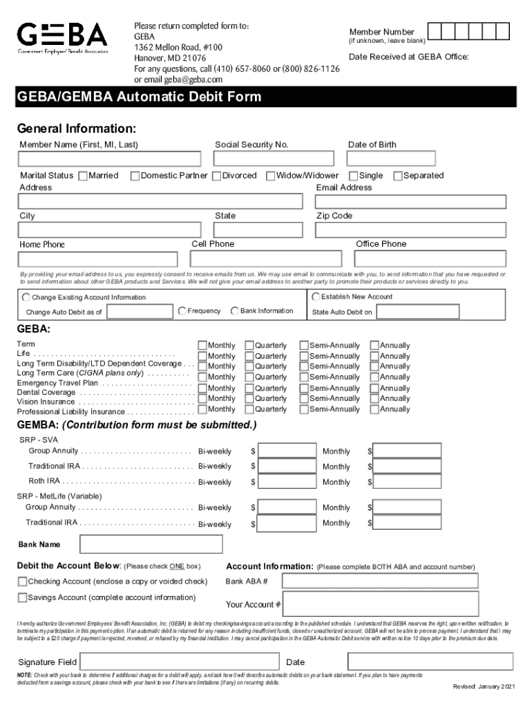 Please return completed form to: Please return completed form to: GBA, Inc. GBA P.O.#100 Box 206 1362 Mellon Road, Annapolis Junction, MD 20701 Hanover, MD 21076 For any questions, caller(800) For