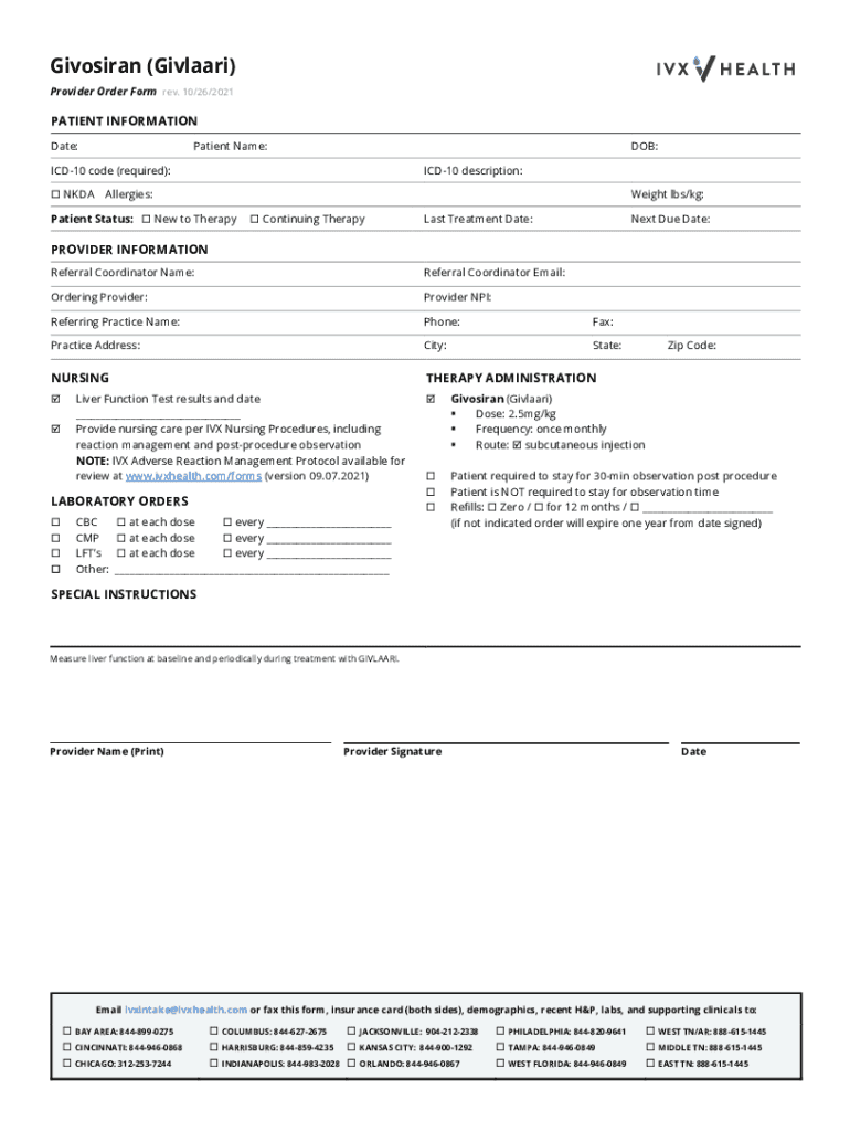 Ivorian (Giuliani) Provider Order Form rev. 10/26/2021PATIENT INFORMATION Date:Patient Name:DOB:ICD10 code (required): NKDAICD10 description:Allergies:Weight lbs/kg:Patient Status: New to Therapy