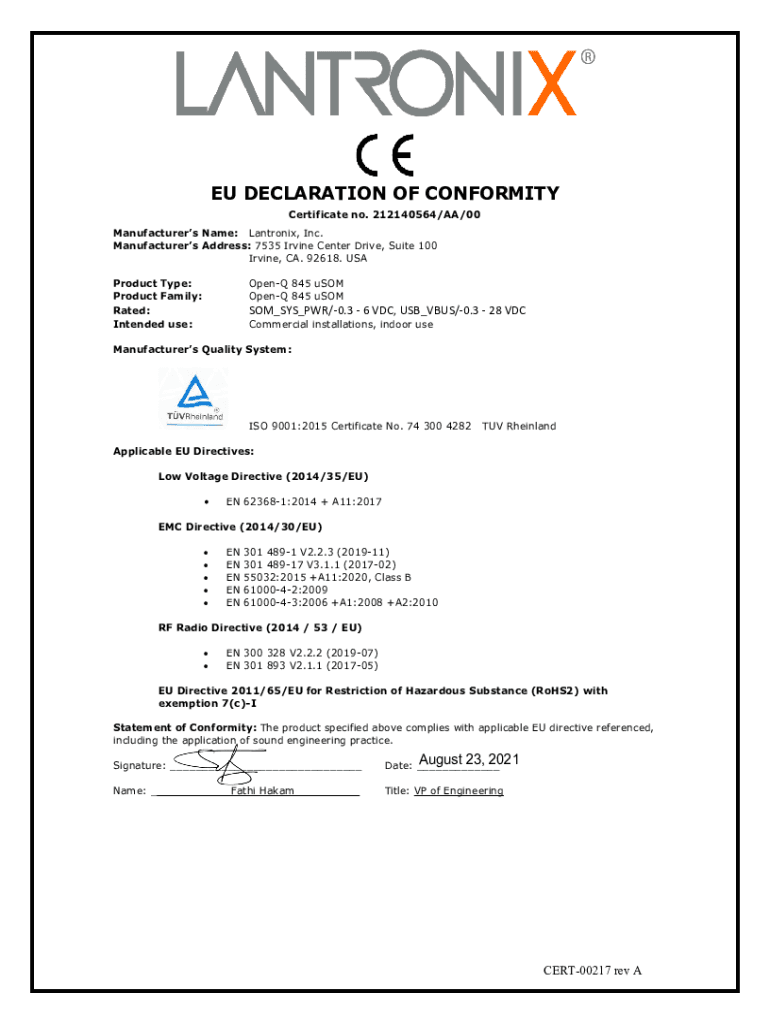Get the free DECLARATION OF CONFORMITY - cdn.lantronix.com