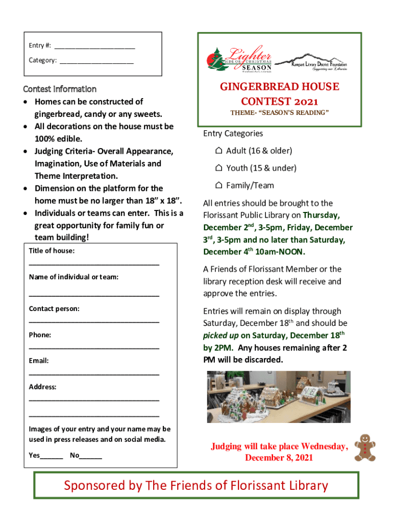 Entry #: Category: Contest Information Homes can be constructed of gingerbread, candy or any sweets. All decorations on the house must be 100% edible. Judging Criteria Overall Appearance, Imagination,