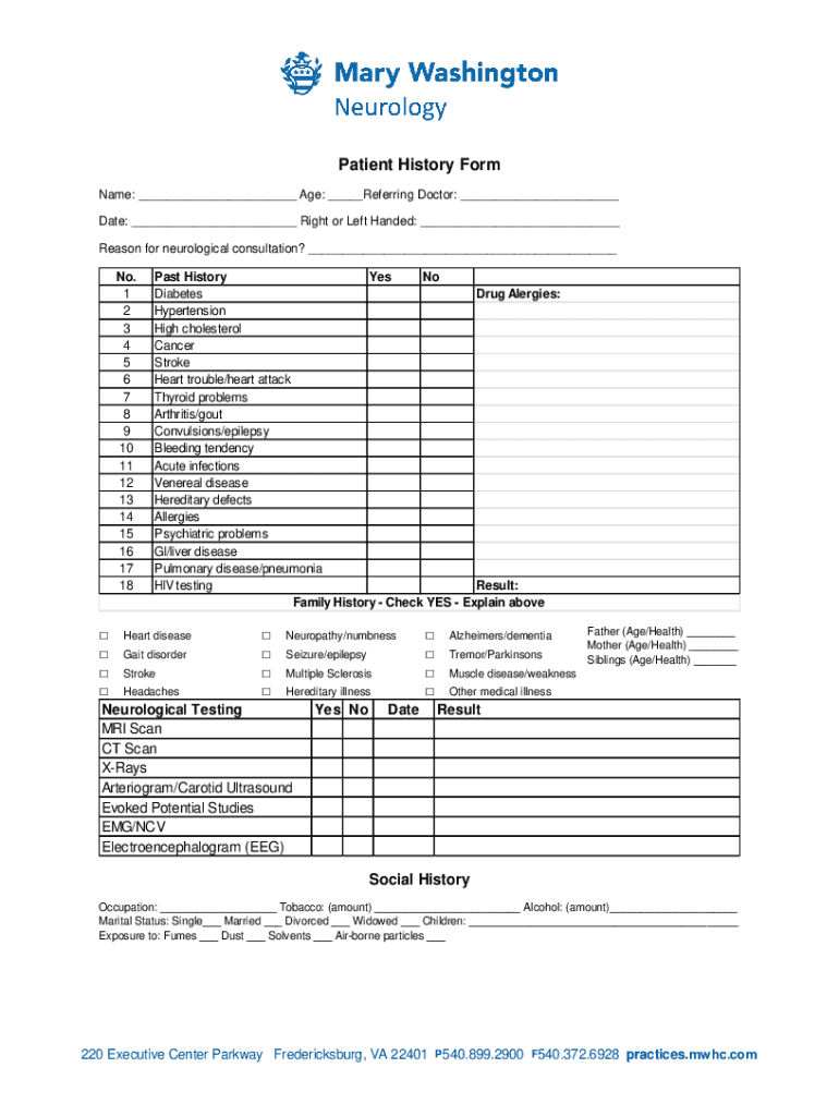 Get the free Patient History Form - marywashingtonhealthcare.com