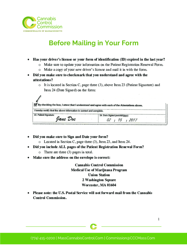 Get the free Before Mailing in Your Form - masscannabiscontrol.com