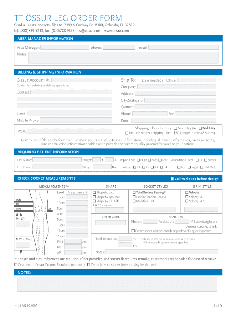 TT SPUR LEG ORDER FORM PACKAGE Thank you for ordering a spur Leg from spur Custom Solutions. This package includes all the order forms needed to define the transtibial leg, order the check socket,