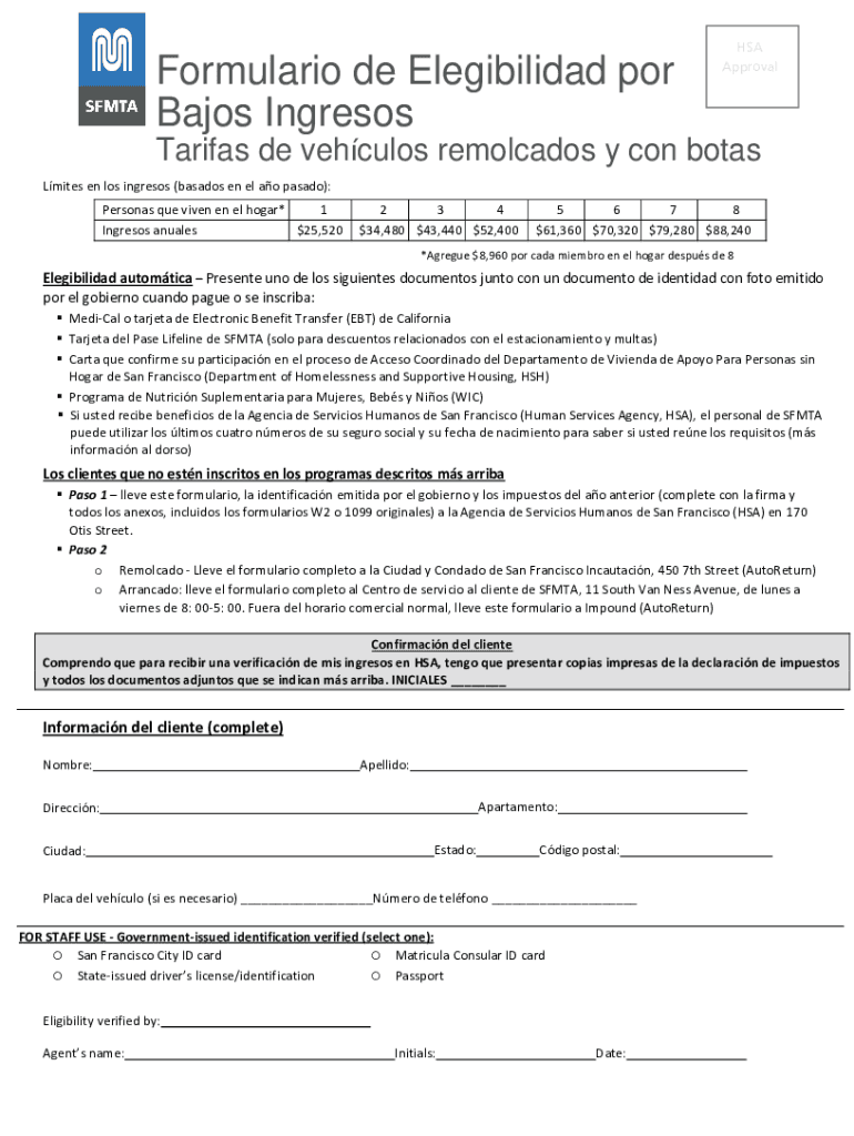 Get the free Formulario de Elegibilidad por Bajos Ingresos