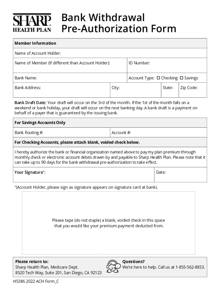 Get the free Sharp Health Plan 2022 Bank Withdrawal Pre-Authorization Form. Sharp Health Plan 202...