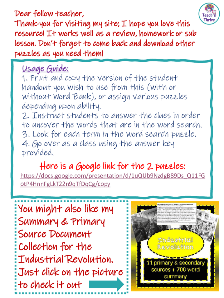 Dear fellow teacher, Thank you for visiting my site; I hope you love this resource! It works well as a review, homework or sub lesson. Don't forget to come back and download other puzzles as you need