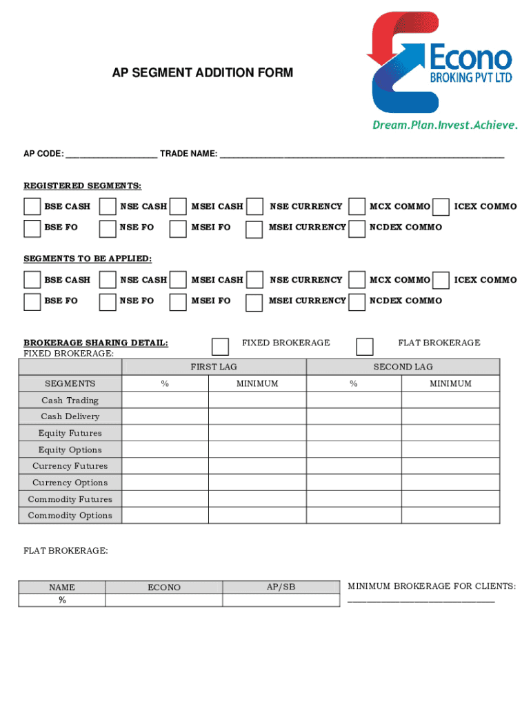 AP SEGMENT ADDITION FORMAT CODE: TRADE NAME: REGISTERED SEGMENTS: BSE CASHES CASHED CASHES CURRENCY COMMONS FOSSE CURRENCYNCDEX COMMENCED COMMOSEGMENTS TO BE APPLIED: BSE CASHES CASHED CASHES CURRENCY