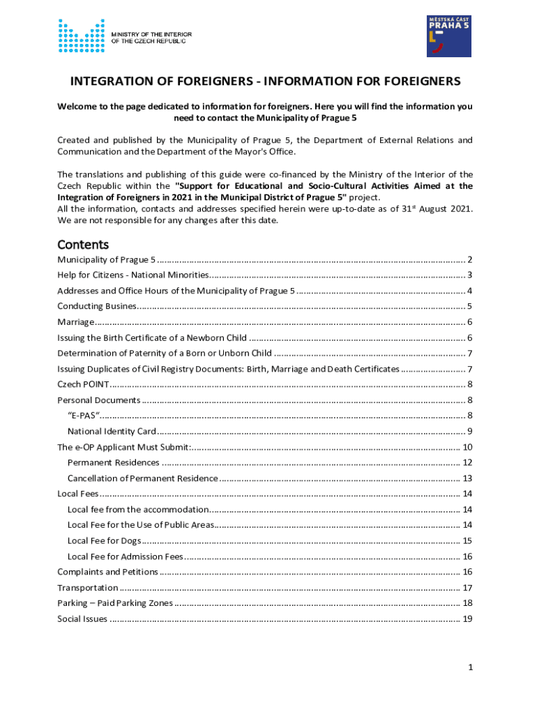 INTEGRATION OF FOREIGNERS INFORMATION FOR FOREIGNERS Welcome to the page dedicated to information for foreigners. Here you will find the information you need to contact the Municipality of Prague