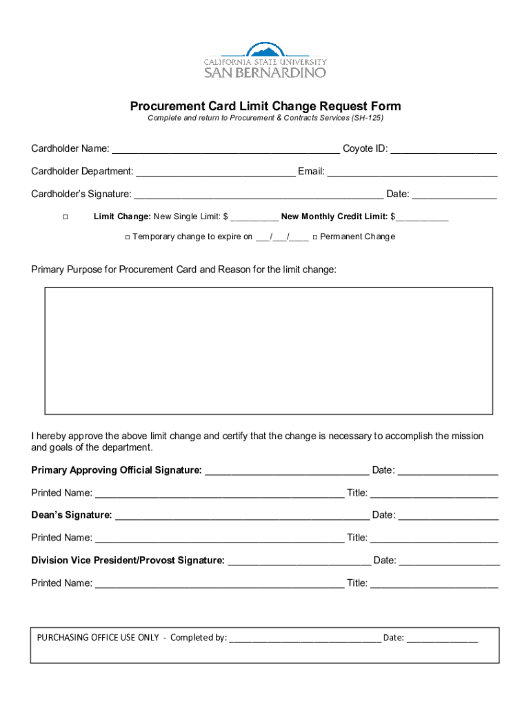 Get the free Procurement Card Limit Change Request Form - CSUSB